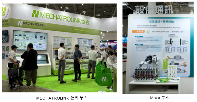 부스에서는 MECHATROLINK 기술과 라인업을 소개했습니다. 올해 신제품은 대만 기업인 Moxa의 신제품을 채택한 데모를 부스에 설치했습니다. Moxa 부스에서도 동일한 데모를 진행하고 많은 방문객에게 소개했습니다.